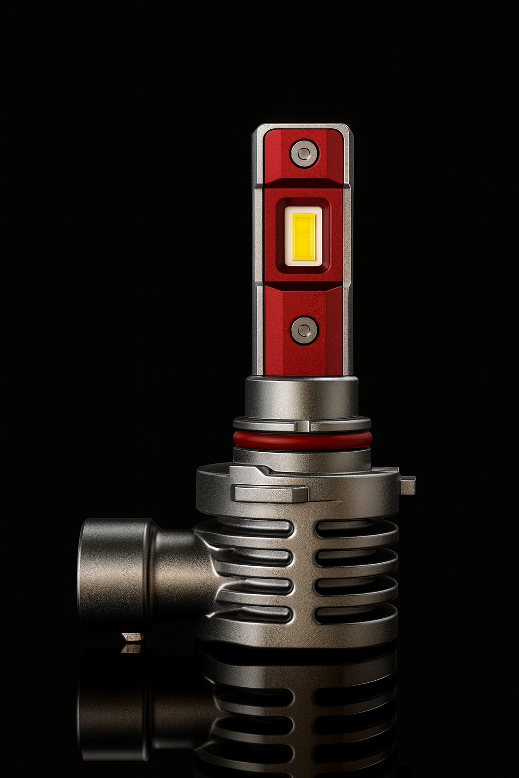 Alliant design et performance, cette ampoule pour automobile se distingue par une tête rouge anodisée à effet métal et une base en chrome poli.
