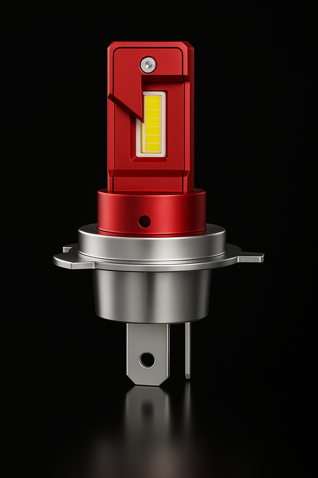 - Finition : rouge anodisé mat métallique sur tête + chrome miroir sur base.